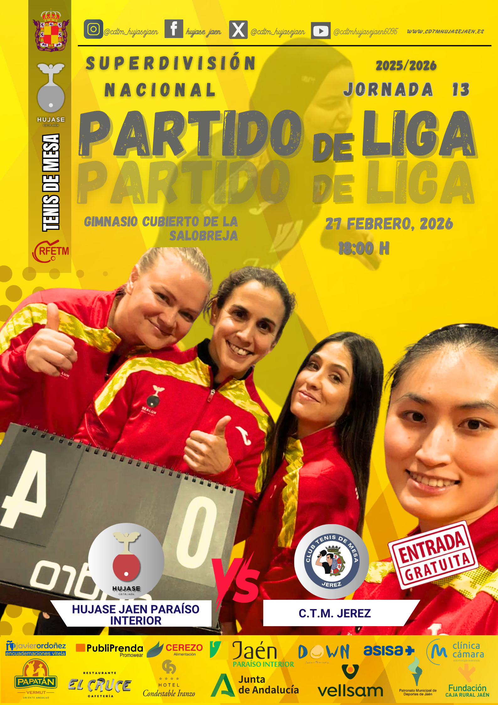 El HUJASE Jaén Fundación Caja Rural logró una importante victoria por 4-2 ante el CTM Jaén en una nueva jornada de la División de Honor Andaluza, en un derbi provincial marcado por la intensidad y la competitividad en cada enfrentamiento individual.