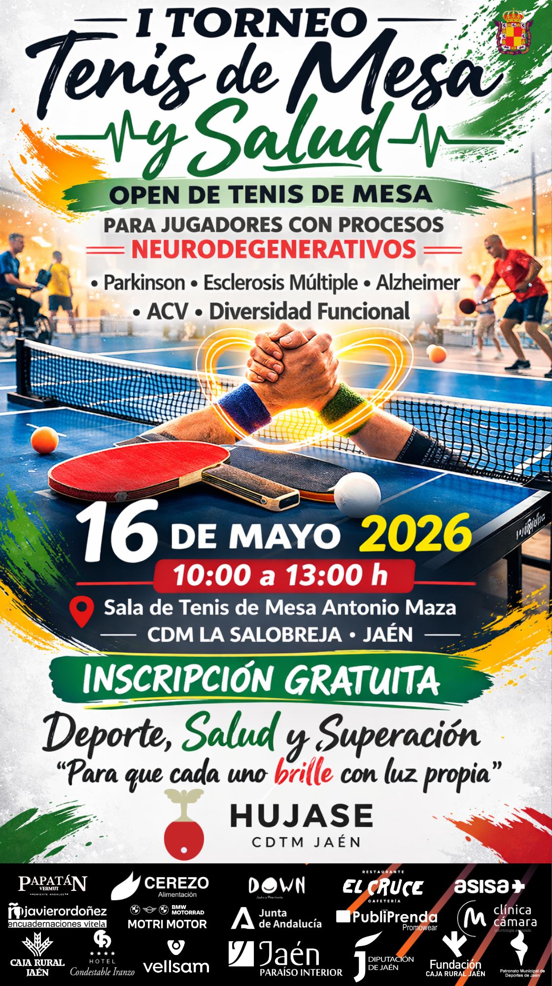 El próximo 16 de mayo de 2026, el CDTM Hujase Jaén organiza el I Torneo “Tenis de Mesa y Salud”, una iniciativa pionera que une deporte, salud y bienestar a través del tenis de mesa adaptado.