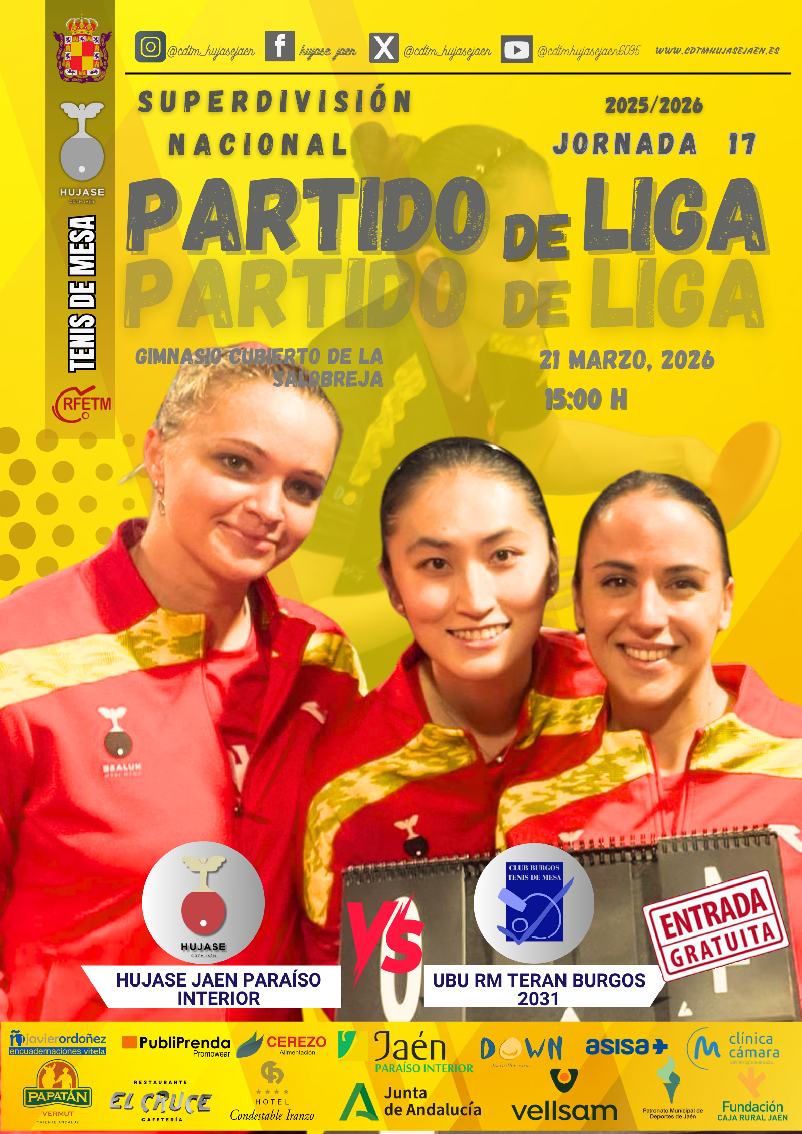 Hujase Jaén Paraíso Interior descansará en la próxima jornada y retomará la competición el 18 de marzo en Mallorca, donde disputará el partido aplazado frente al Son Cladera TTC.